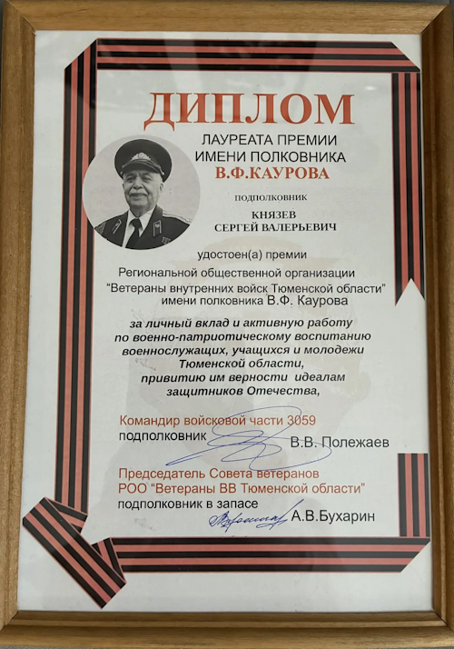 Награждение подполковника Князева Сергея Валерьевича